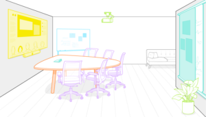 ”Perinteinen kokoushuone on suunniteltu tunnin kestävää keskustelua varten, ja Teams tukee tätä digitaalisessa muodossa erittäin hyvin. Voimmekin muuttaa tämän alkuperäisen fyysisen huoneen joksikin, mikä tuntuu täysin erilaiselta – merkityksellisemmältä, mukautuvammalta ja immersiivisemmältä”, Herman Millerin globaali tutkimusjohtaja Ryan Anderson sanoo.