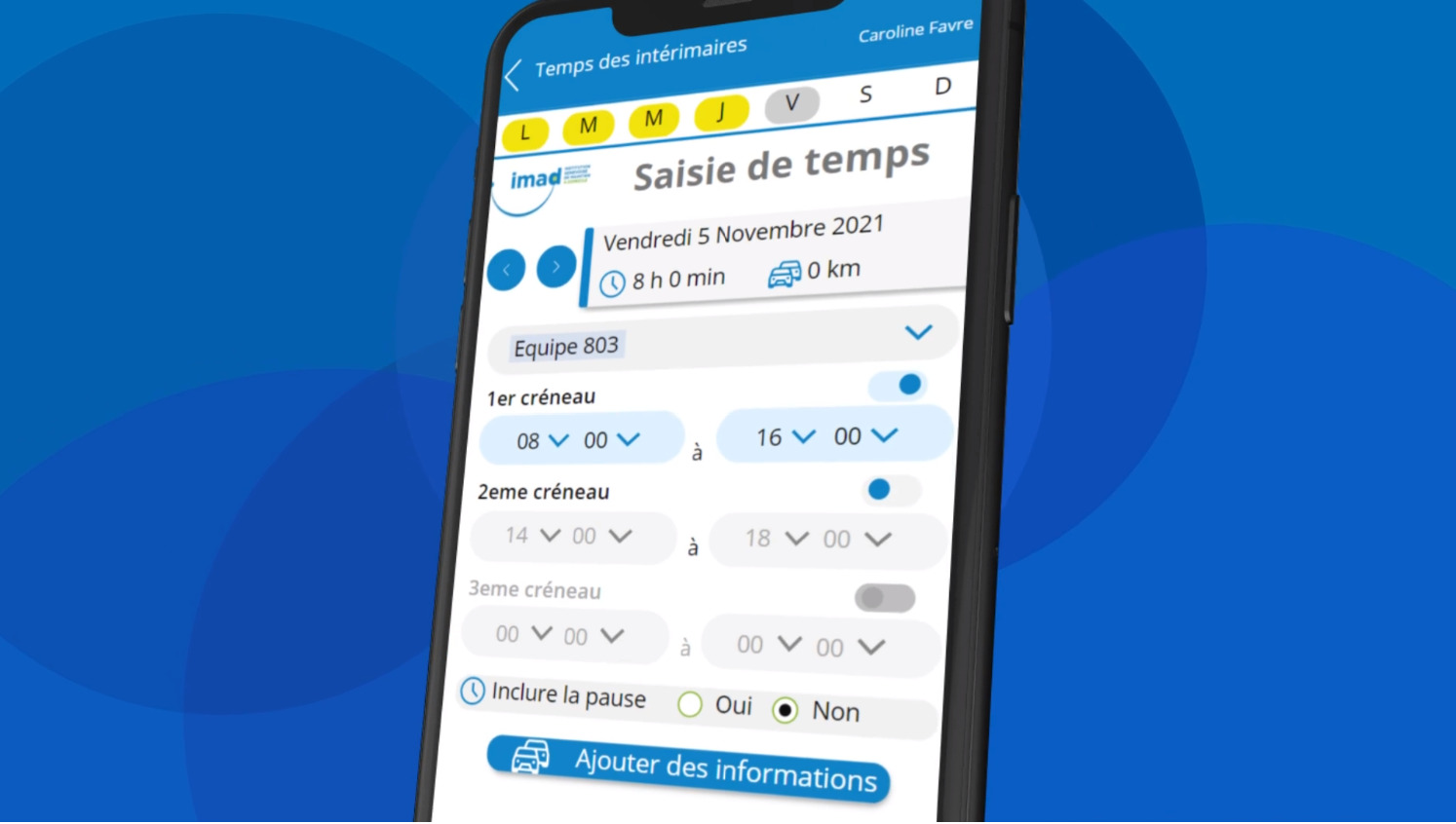 « Jusqu’à présent, il existait autant de solutions de reporting des horaires et frais que d’agences de placement. Les recruteurs avec qui nous travaillons et les intérimaires de imad avaient besoin d’une solution unique, facile d’utilisation et moderne pour optimiser la gestion des horaires », constate Vincent Grattard, directeur adjoint des ressources humaines et coordinateur du projet. « En réunissant les forces dont nous disposons au sein de l’institution dans les domaines des ressources humaines, de l’informatique et des finances, nous avons réussi ensemble à mettre sur pied une solution digitale, sur mesure et qui illustre la capacité d’innovation de imad comme employeur. Cette application offre un gain de temps précieux à nos intérimaires et simplifie le travail des agences. Je tiens à remercier toutes celles et ceux qui ont participé à son développement. »