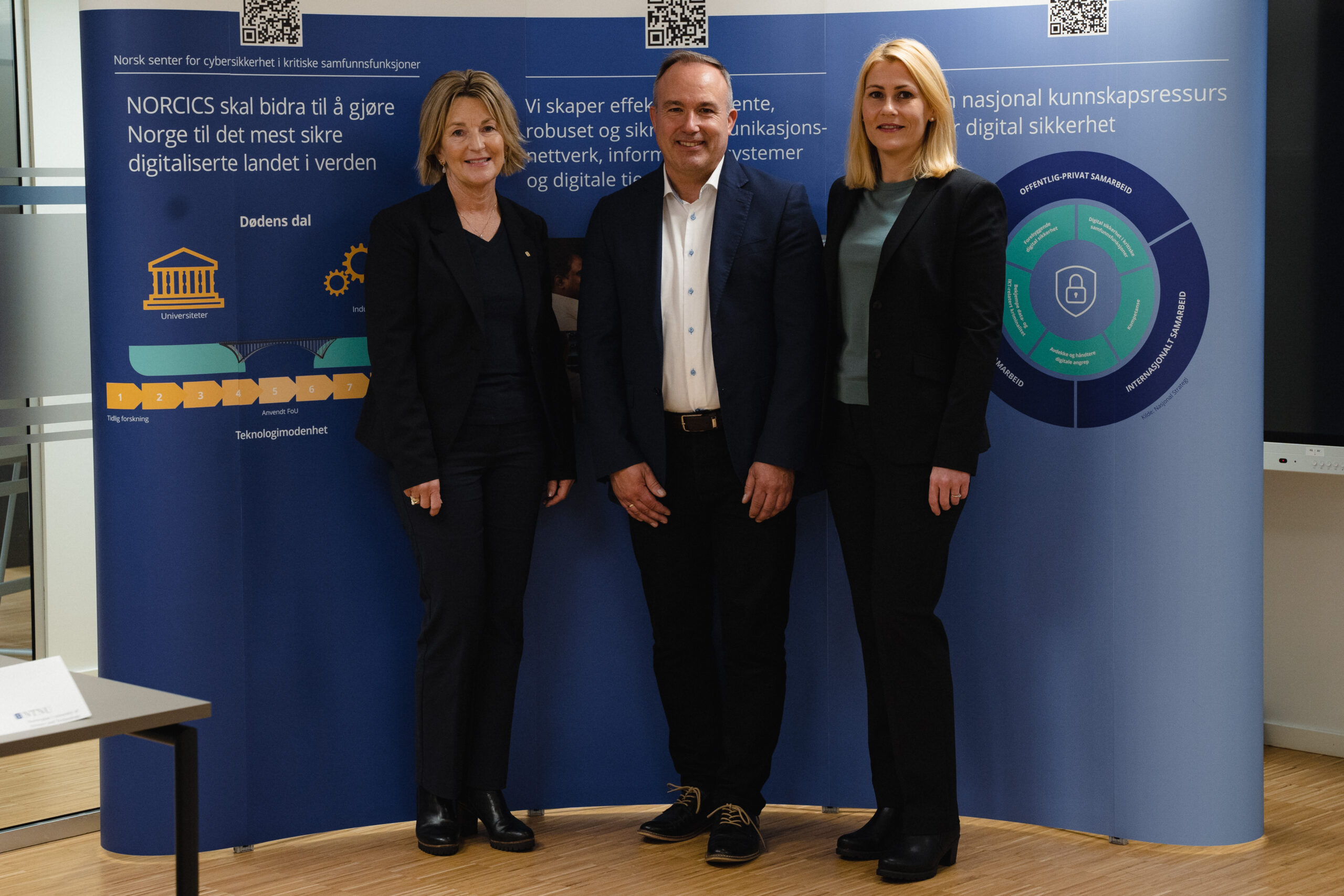 Ingrid Schjølberg, dekan ved Fakultet for informasjonsteknologi og elektroteknikk ved NTNU, Verner Hølleland, adm.dir. i HP Norge og Kristine Dahl Steidel, adm.dir. i Microsoft Norge er stolte samarbeidspartnere for det nye cybersikkerhetskurset ved NTNU.