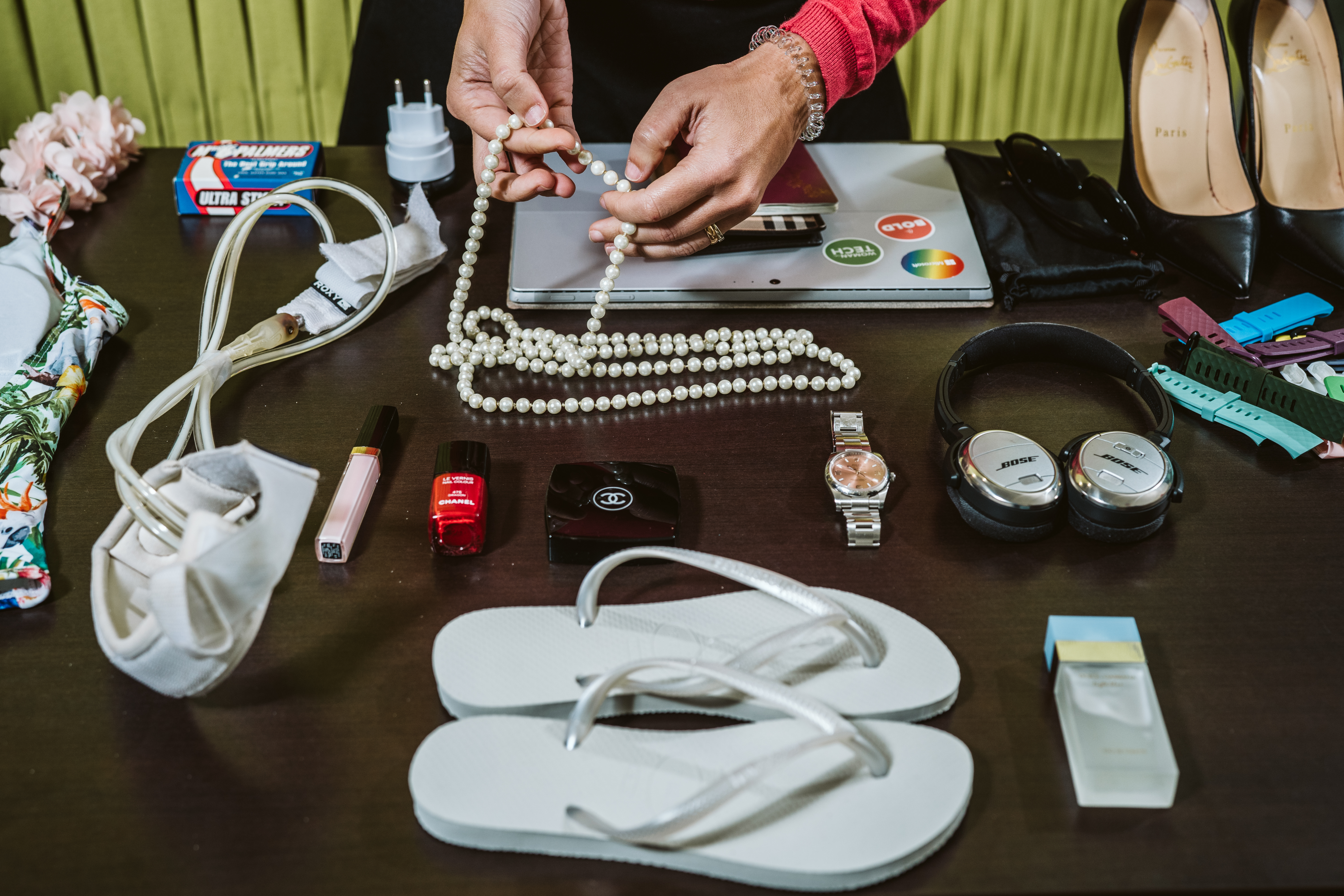 Faco surf há mais de 20 anos. Comecei quando apenas uma mão cheia de mulheres se aventurava no mar em Portugal. Adoro estar na praia, o cheiro a maresia, com o sol a beijar-me a pele… por isso, não dispenso chinelos, um wetsuit e óculos de sol – os acessórios perfeitos para mim e que são também obrigatórios.