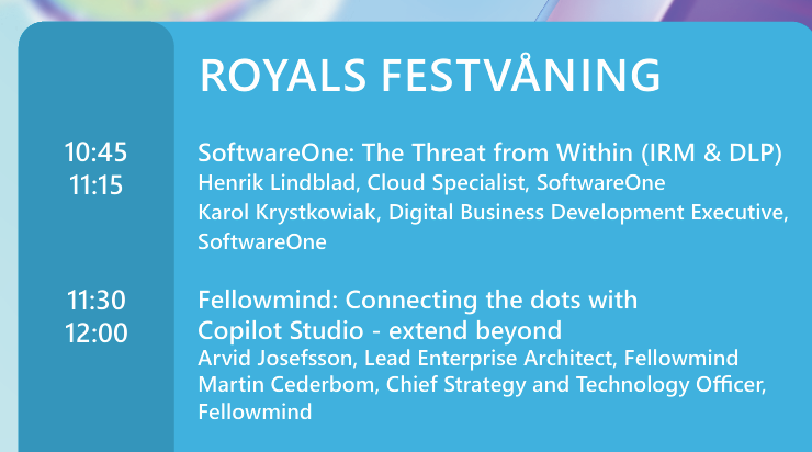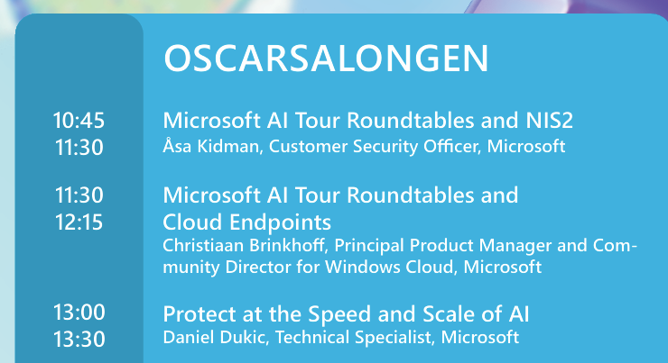 Here you will find the full agenda for every breakout room at Microsoft AI Tour Stockholm as a PDF
